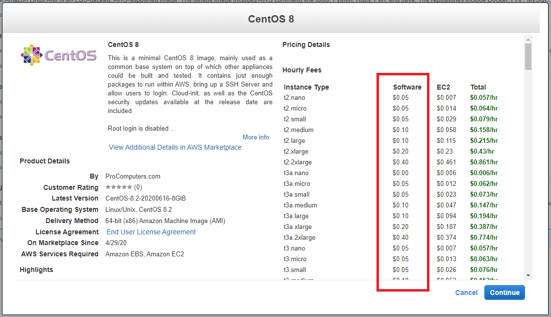 아차 하면 코 베이는 곳! 그곳이 AWS Marketplace다. 문제는 8버전이 유료라는 것이다. 심지어 공식 image도 아니다. 방심하고 클릭해서 썼다간 CentOS를 레드햇만큼의 돈을 주고 이용하게 된다.