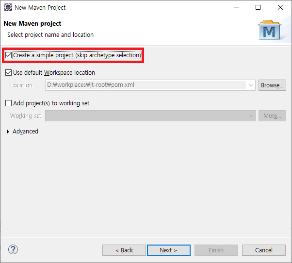simple project를 체크해주자. (보다 간편하게 프로젝트를 생성할 수 있다.)