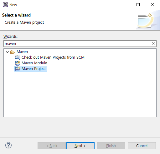 생성시에는 Maven Project로 생성할 수 있다.