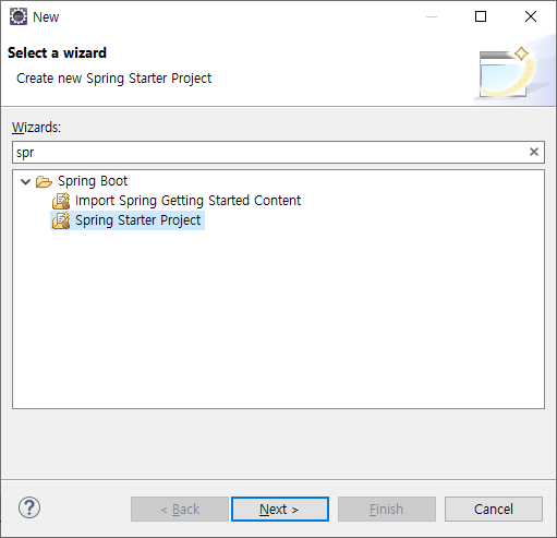 두번째 방법은 Spring Starter Project로 생성하는 것이다.