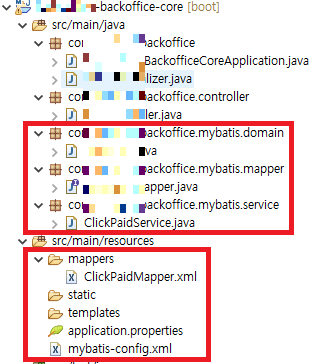 Core project의 구성 이렇게 구성하면 mapper와 service, xml 파일, 심지어는 controller 까지도 core에 두고 개발이 가능하다.