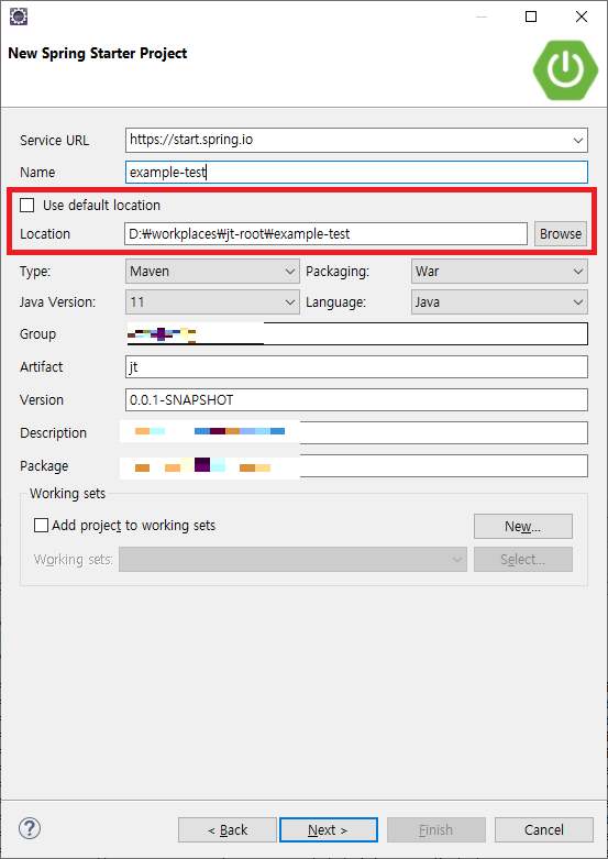 이 방법으로 할 경우에는 default location이 아닌 parent project의 하위 경로에 생성을 하여야 한다. 그리고 parent project에 module로 등록을 해야 한다.