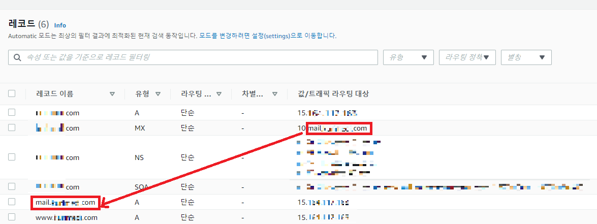 여기서 중요한 것은 MX 유형의 레코드를 잡아야 한다.
